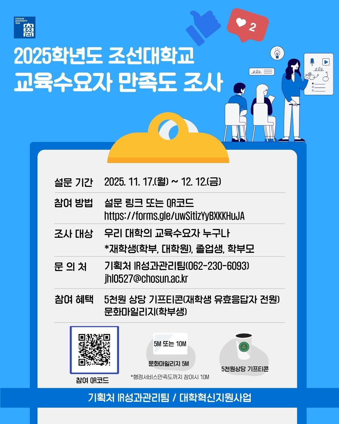 [2025학년도 조선대학교 교육수요자 만족도 조사 참여 안내]
