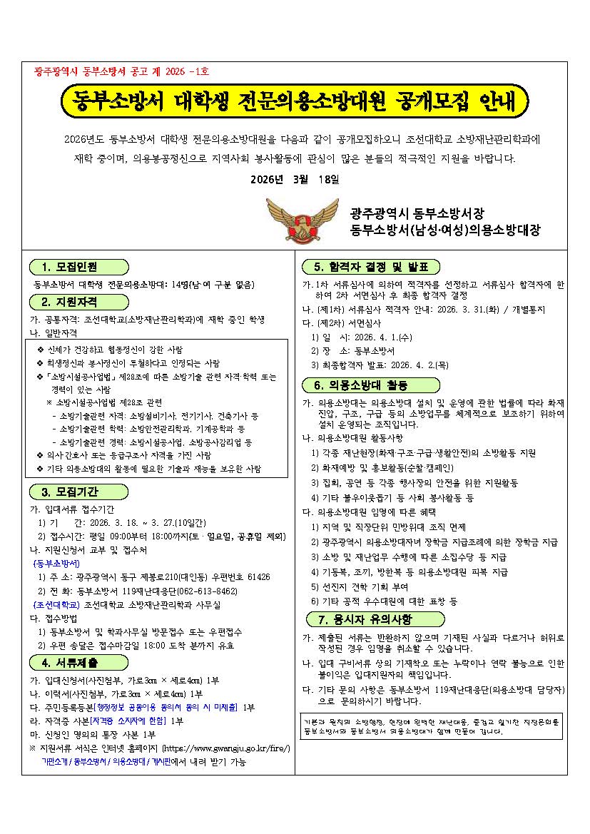 [동부소방서]대학생 전문의용소방대원 공개모집 (소방재난관리학과)