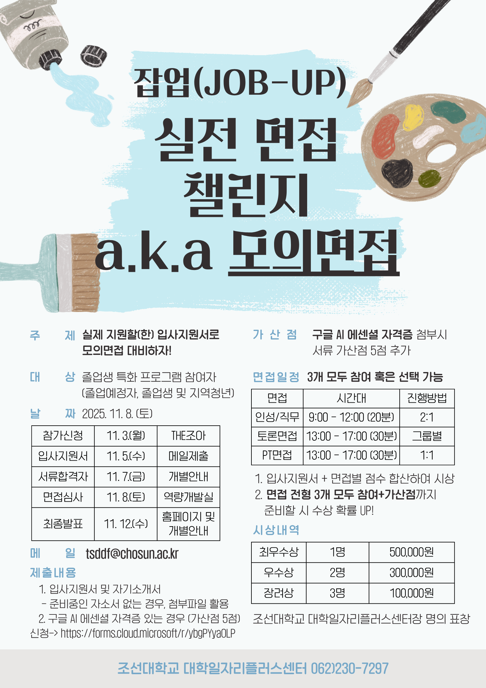 준비중인 입사지원서 혹은 양식활용 담당자 메일로 제출(tsddf@chosun.ac.kr) |